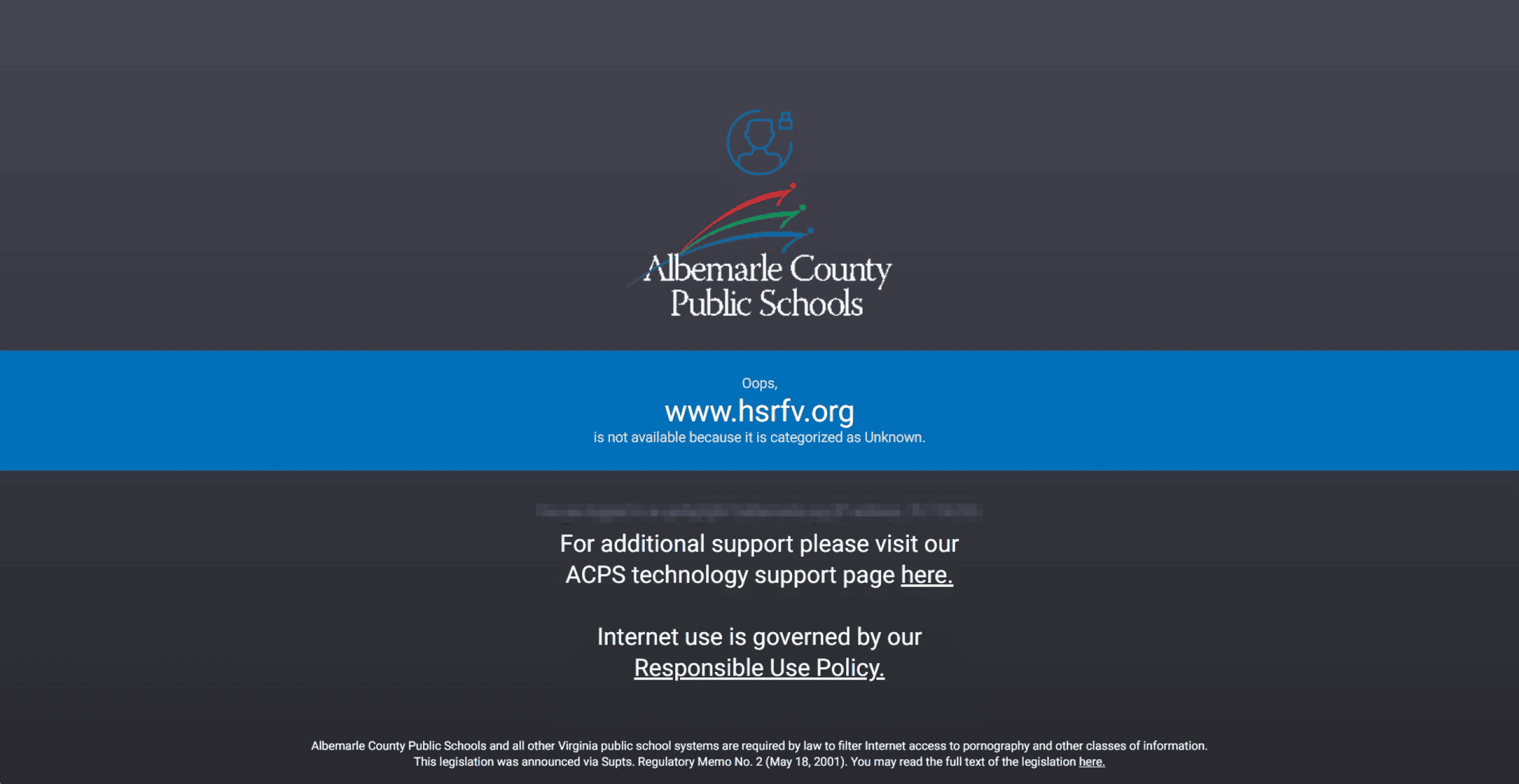 Shortly after the revelation (and subsequent embarrassment of ACPS), the issue was rectified internally, and both sites were accessible from within the ACPS network.