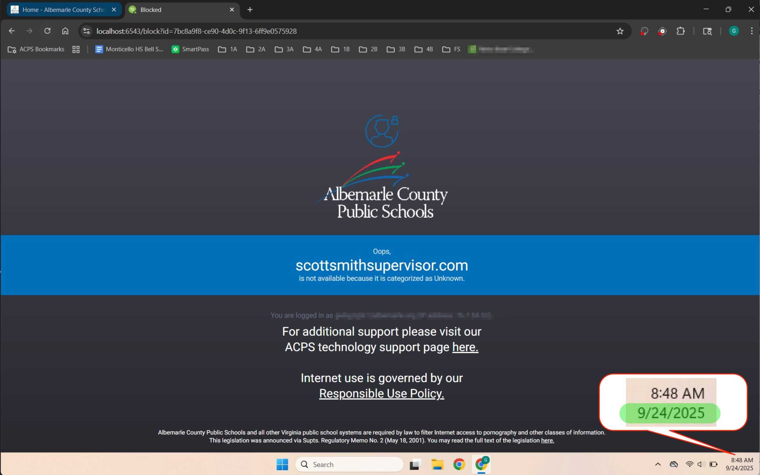 A week after becoming aware of their own discriminatory blocking of a local GOP campaign web site, Albemarle County Public Schools (ACPS) has yet to rectify the situation.